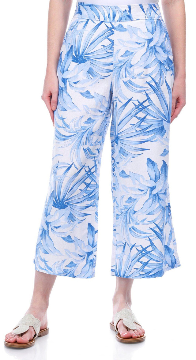 Embrace a breezy, tropical vibe with the Womens 25 in Linen Palm Print Capris. Made from a blend of linen and rayon, these capris offer a comfortable and breathable fit. The elastic waistband ensures ease of wear, while the 25-inch inseam and wide leg fit provide a relaxed silhouette. With side seam pockets for added convenience, these capris are perfect for any casual outing or vacation.