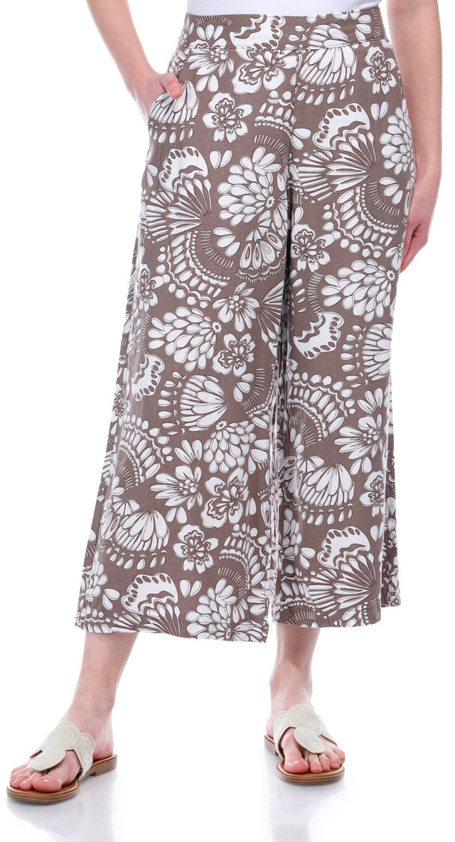 Embrace a breezy, tropical vibe with the Womens 25 in Linen Print Capris. Made from a blend of linen and rayon, these capris offer a comfortable and breathable fit. The elastic waistband ensures ease of wear, while the 25-inch inseam and wide leg fit provide a relaxed silhouette. With side seam pockets for added convenience, these capris are perfect for any casual outing or vacation.