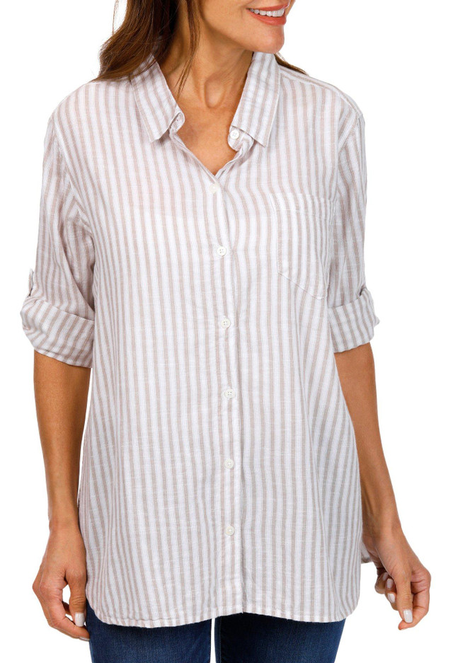 This is not your average button-down. Made from a breathable cotton-rayon blend, this womens ribbed top delivers texture, structure, and comfort in one sharp package. The collar neck adds polish, while quarter sleeves keep it versatile for any season. Ribbed finish gives it a tailored edge that flatters without fuss. Wear it tucked, untucked, layeredjust do not wear it like everyone else.