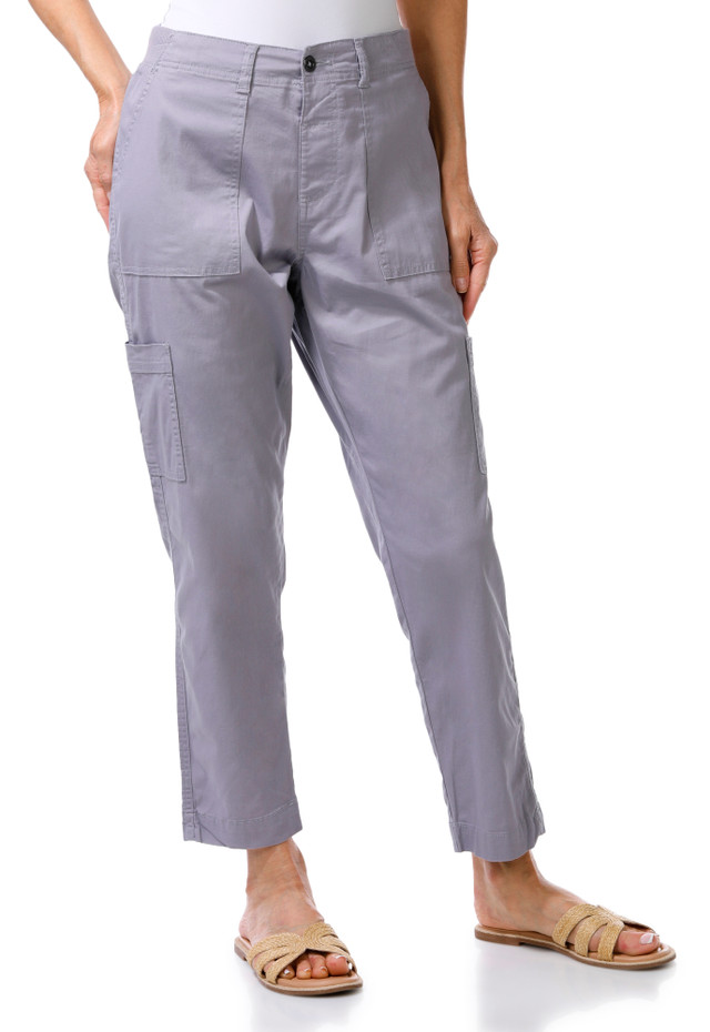 These womens twill cargo pants offer everyday versatility with a solid color design and functional side, back, and cargo pockets. The 27 inch inseam provides a comfortable fit, making them an easy choice for casual outings and all day wear. Fabrication 98% cotton, 2% spandex