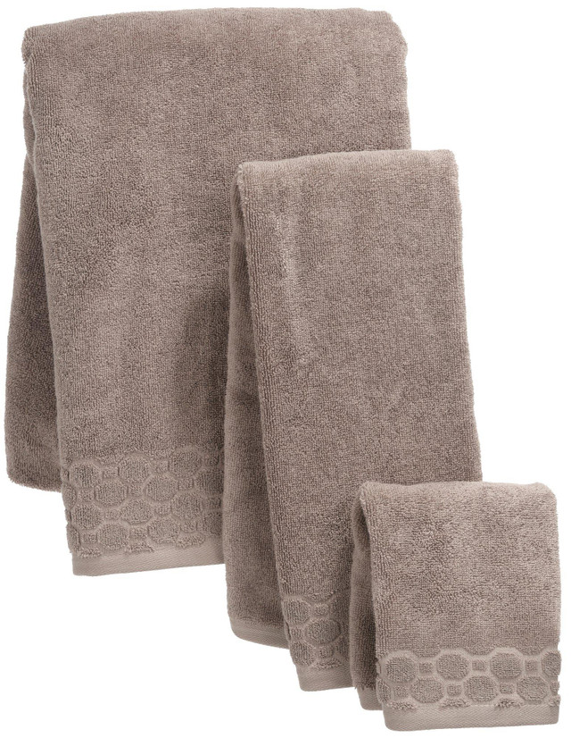 Experience ultimate comfort with this luxurious towel collection, crafted from soft cotton for a plush and gentle feel. These towels are designed to provide exceptional absorbency and durability, making them perfect for everyday use. Each towel sold separately. Bath towel measures 29in x 59in., hand towel measures 28in x 15.5in., wash cloth measures 13in x 13in.