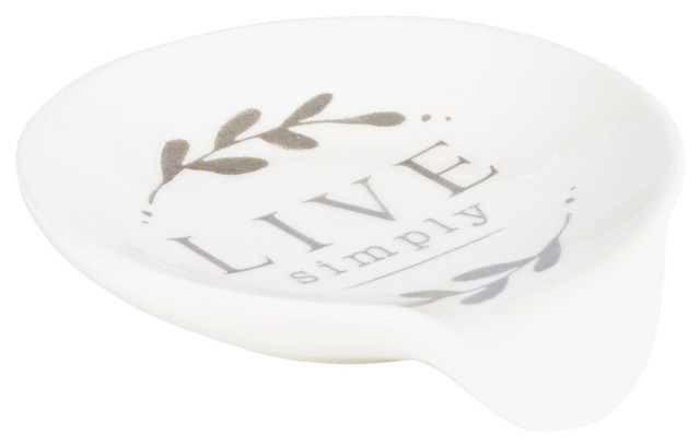Introducing the 4 in Ceramic Live Simply Spoon Rest, a charming addition to your kitchen. This spoon rest features a minimalist Live Simply design, adding a touch of elegance to your countertop. Perfect for keeping your cooking area tidy, its 4-inch size accommodates various utensils. Crafted from durable ceramic, this spoon rest combines practicality with style, making it an essential tool for any home chef.