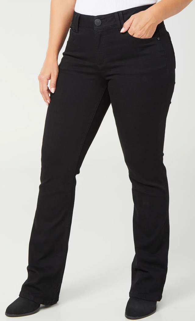 Step up your everyday style with our Women's 31 inch Straight Leg Ab-Tec Jeans. Featuring a solid color and classic five pocket cut, they offer a timeless look with modern comfort. The button-fly zip closure ensures a secure fit while the Ab-Tec slimming waistband technology provides a flattering silhouette that moves with you. Fabrication 60% cotton, 31% polyester, 7% rayon, 2% spandex