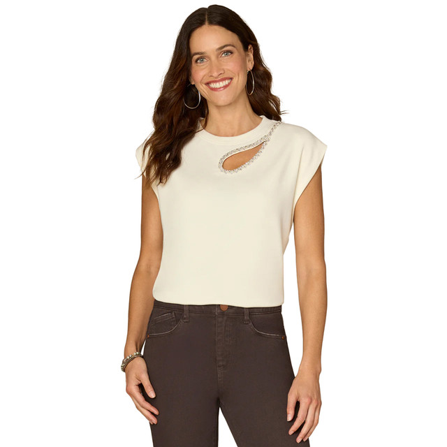 Democracy Womens Extended Cap Sleeve Rhinestone Top