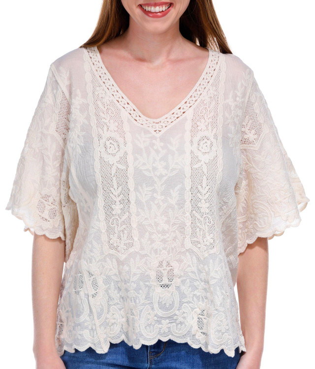 Embrace timeless elegance with this Short Elbow Sleeve Top, featuring exquisite embroidery and delicate crochet accents. The elbow-length sleeves offer a sophisticated touch, while the intricate details add a layer of charm to your look. Crafted from soft, breathable fabric, this top ensures comfort and style for any occasion.