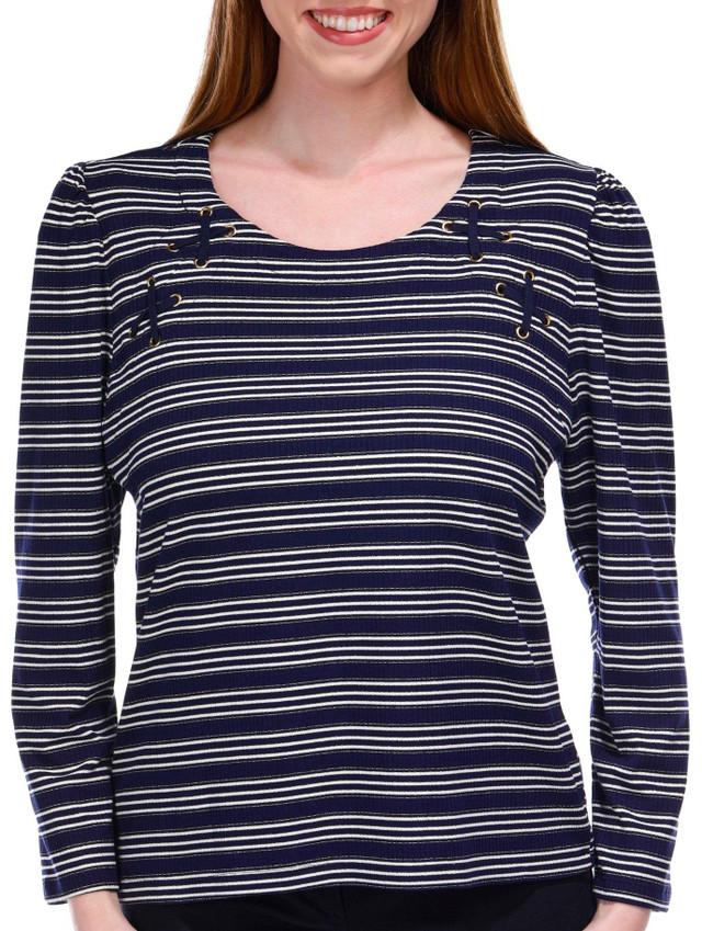 Democracy Womens Striped Long Sleeve Rib Knit Top
