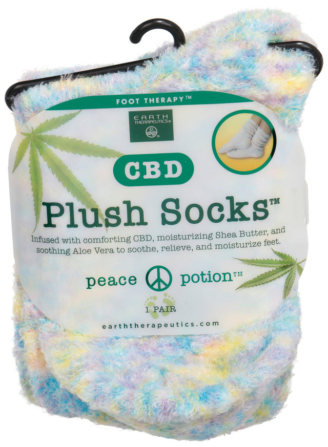 Infused with CBD, natural Aloe Vera and shea butter, these super-soft socks continually comfort, soothe and moisture while surrounding your feet in plush comfort. For best results massage in your favorite foot lotion before slipping on the socks to leave feet feeling soft & smooth.