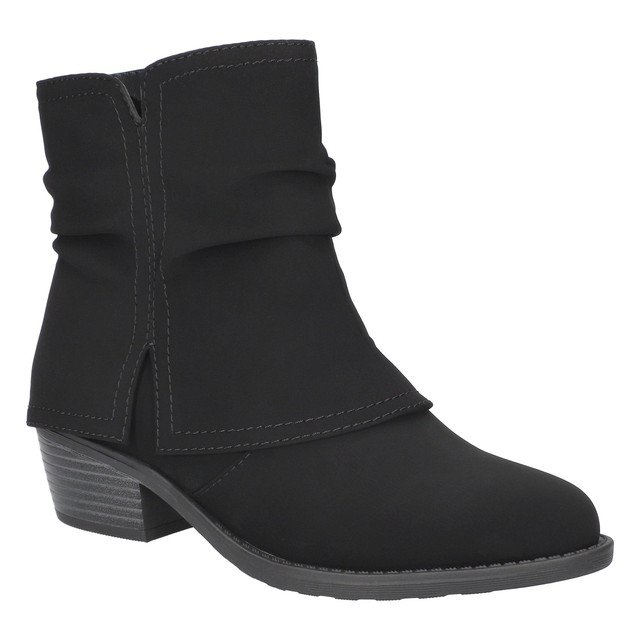 Celebrate style with the contemporary on-trend new Kudos ankle boot by Easy Street. Designed for fashion and comfort. The soft slouch overlay detail and underslung block heel will help transition any outfit to casual and fun! Padded heel-to-toe for added comfort and an inside zipper for easy on/off.