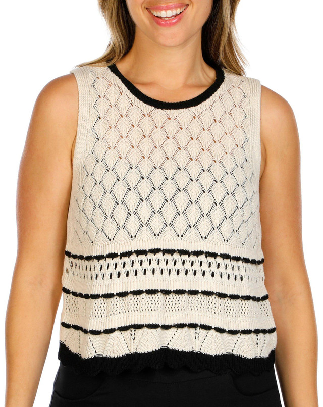 Simple, soft, and effortlessly stylish, this Sleeveless Top is crafted from a cozy knit fabric that feels as good as it looks. With its clean lines and easy fit, its perfect for layering or wearing solo on warm days. A versatile essential that brings comfort and charm to any outfit. Fabrication is 65% polyester, 35% cotton.