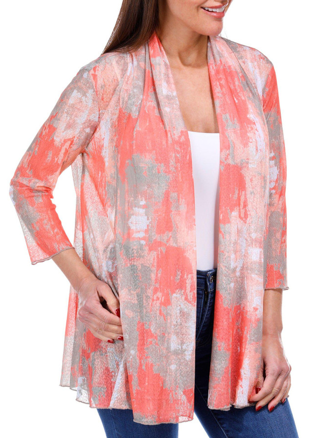 Add a touch of elegance to your wardrobe with this 3/4 Sleeve Cardigan! Featuring an open front design, this cardigan is crafted from semi-sheer mesh fabric that offers a light and airy feel. The colorful print adds a modern and stylish twist, making it perfect for layering over your favorite outfits. Ideal for both casual and dressy occasions, this cardigan combines sophistication and versatility effortlessly. Fabrication is 95% polyester, 5% spandex.
