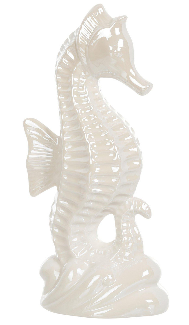 Add a touch of coastal charm to your home with our Ceramic Seahorse Figurine! This delightful piece is crafted from solid color painted ceramic, offering a sleek and elegant look that complements any decor. Perfect for displaying on a shelf, mantel, or tabletop, this figurine brings a hint of the ocean's beauty to your space. Measures approximately 2.5 in x 4 in x 8 in.