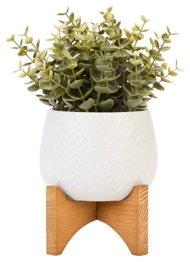 Flora Bunda 4.8 in Indian Matte Ceramic on Wood Stand