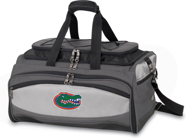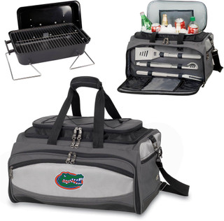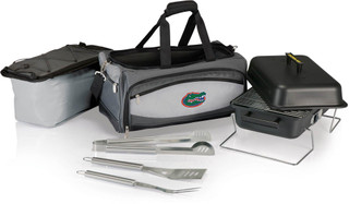 The ultimate tailgating set! Cooler measures 16'' x 8'' x 7'' and holds 24 cans. Tote includes: portable charcoal grill with lid (16.7'' x 10.8'' x 5.1''), drawstring bag, spatula featuring bottle opener, grill scraper, and serrated edge, tongs, and BBQ fork.
