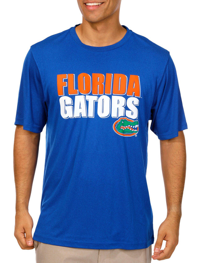 Show your team pride in the Florida Gators Mens Wordmark Performance Shirt. Designed with stretchy, breathable fabric, it features short sleeves, a classic crew neckline, and bold wordmark graphics.