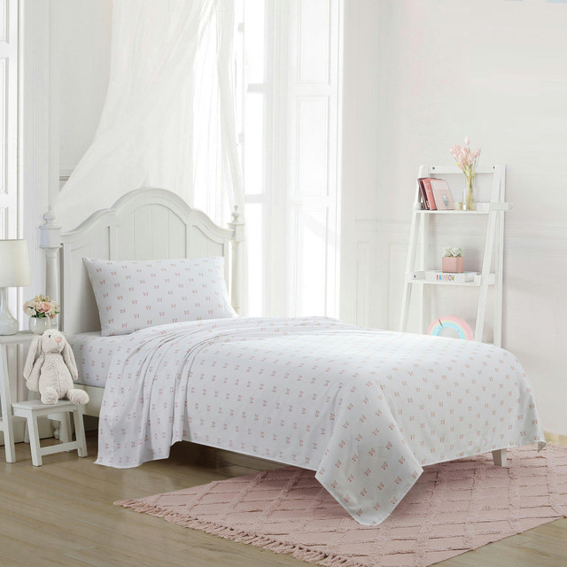 Introducing the Laura Ashley Fluttery Sheet Set made especially for kids, CPSIA tested to ensure safety for children 12 and under. The sheet sets are woven from 100% polyester microfiber to be super soft, easy-care and wrinkle resistant. Machine washable.