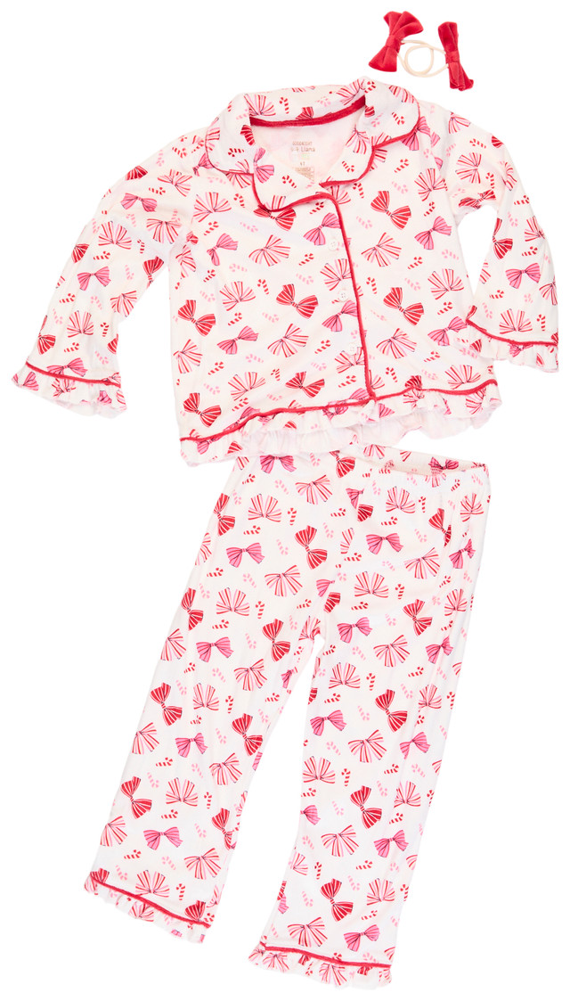Goodnight Llama Toddler Girl 3 Pc Christmas Bows Pajama Set