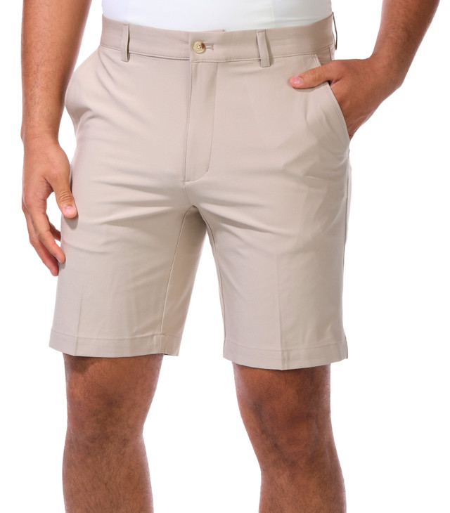 The Greg Norman Collection is golf-inspired sportswear with the performance technology and style you seek. The lightweight, strechy material features UPF sun protection and moisture wicking, so you are protected and comfortable on and off the golf course. It features two front and two back pockets for all of your essentials. Inseam measures approximately 9 in. Comprised of 90% polyester, 10% spandex