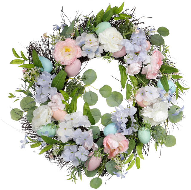 Handcrafted Easter 22 In Egg & Ranunculus Spiral Vine Wreath