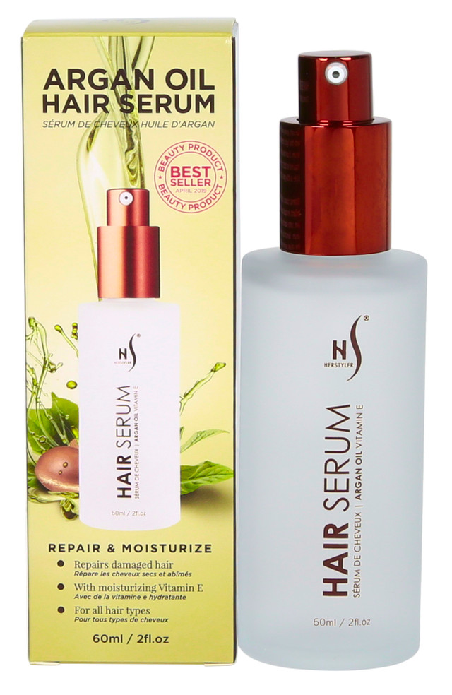 A lightweight, non-greasy serum that repairs damaged hair, tames frizz, and adds glossy shine. Infused with Argan Oil, Aloe Vera, and Vitamin E to smooth split ends and protect against daily buildup. Suitable for all hair types, including color-treated hair. Apply 12 pumps to damp or dry hair. 60 ml - 2 fl. oz.