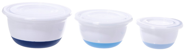 This 6-piece mixing bowl set includes three nesting bowls with matching lids, designed for durability and convenience. Each bowl features a non-slip base for stable mixing and a compact nested design for easy storage, perfect for everyday kitchen tasks.