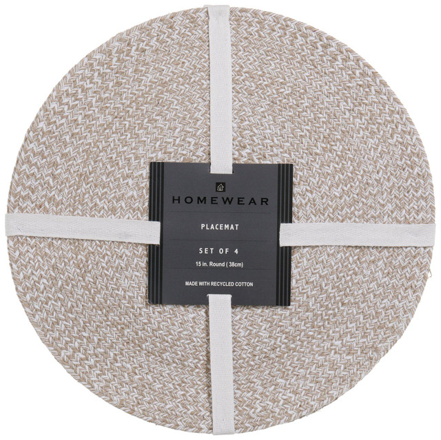 Elevate your table settings with our set of 4 round placemats, each measuring 15'' in diameter for a sophisticated touch. Crafted from 100% cotton, these placemats offer a soft and inviting texture while ensuring long-lasting durability. Perfect for family dinners or gatherings, this set of four placemats provides ample coverage and protection against spills.