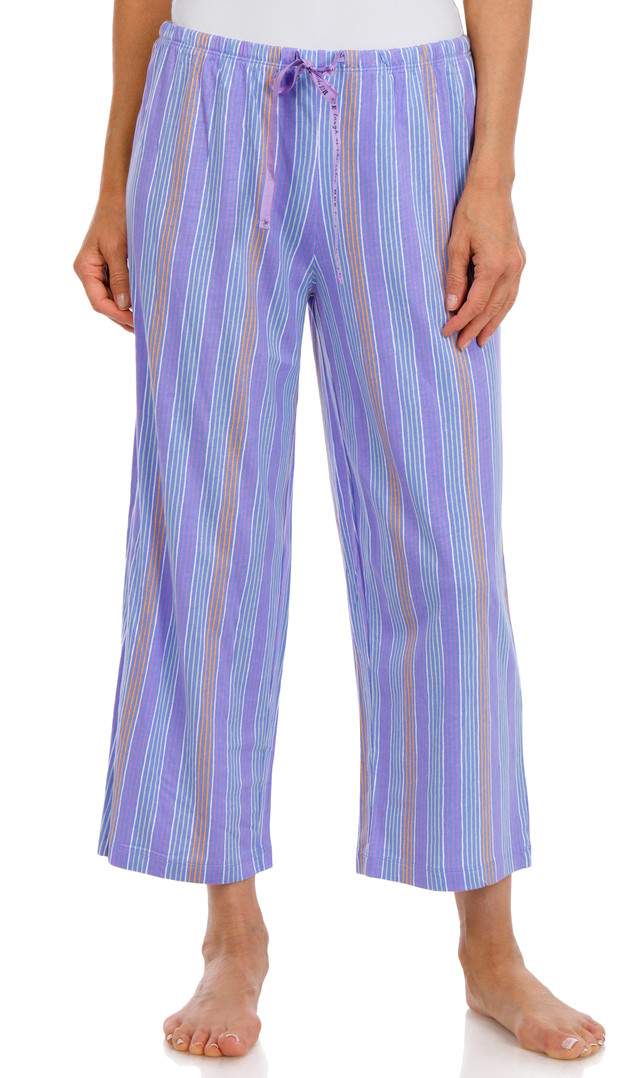 Relax in effortless comfort with these womens salon stripe pajama capris. Designed with a soft, breathable feel, they feature classic stripe detailing and an adjustable drawstring waistband for a customized fit. The cropped length makes them perfect for lounging or sleeping, offering easygoing style and all-night comfort.