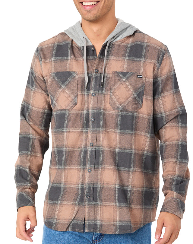 Hurley Mens Long Sleeve Flannel Button Down Hooded Shirt