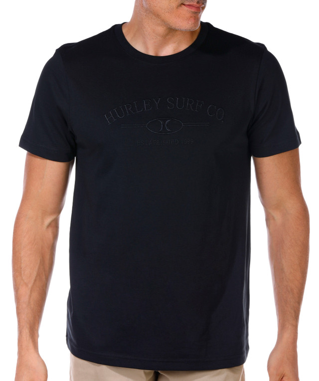 Keep it classic with the Mens Short Sleeve Embroidered Surf Tee. Featuring a solid color, crew neckline, and short sleeves, this tee is finished with embroidered brand script for a clean, laid back look that is perfect for everyday wear. Shirt length measures approximately 28. Fabrication is 100% cotton.