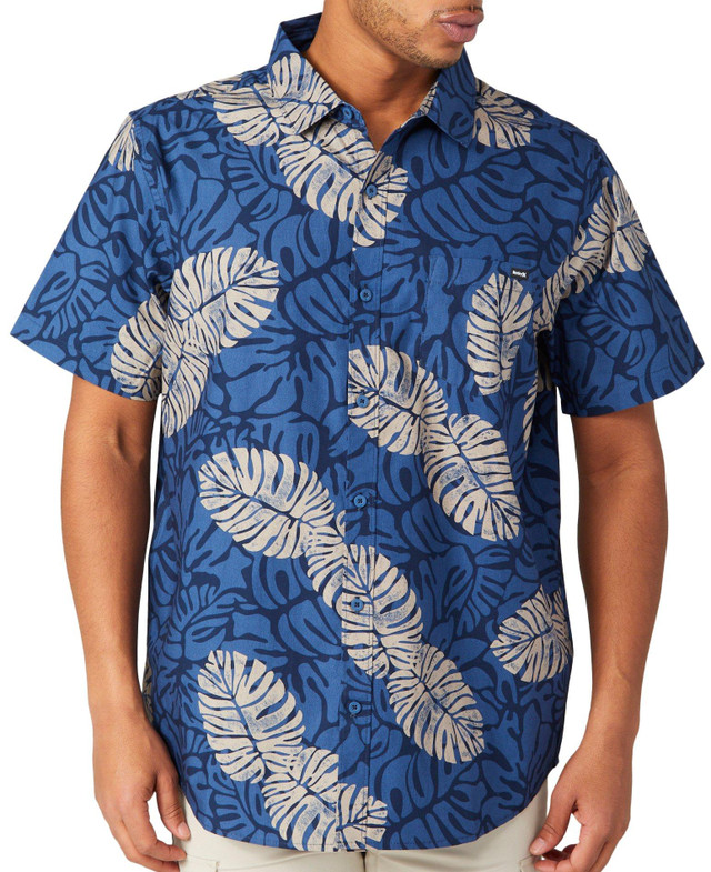 This mens button down shirt from Hurley features a bold tropical floral print perfect for laid-back days or vacation vibes. Crafted from 100 percent cotton for breathable comfort and a soft feel. Includes a classic chest pocket for added style and function. Ideal for beach outings, casual wear, or warm weather looks.