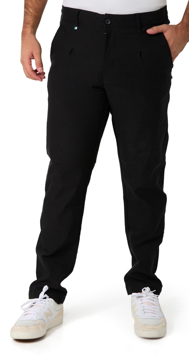These mens stretch jogger waist pleated pants feature a button and fly closure with an interior drawstring for a secure, adjustable fit. The stretch fabric and slim fit design provide comfort and mobility, making them ideal for casual or active wear. Inseam is approximately 30 in. Fabrication is 74% rayon, 22% nylon, and 4% spandex.