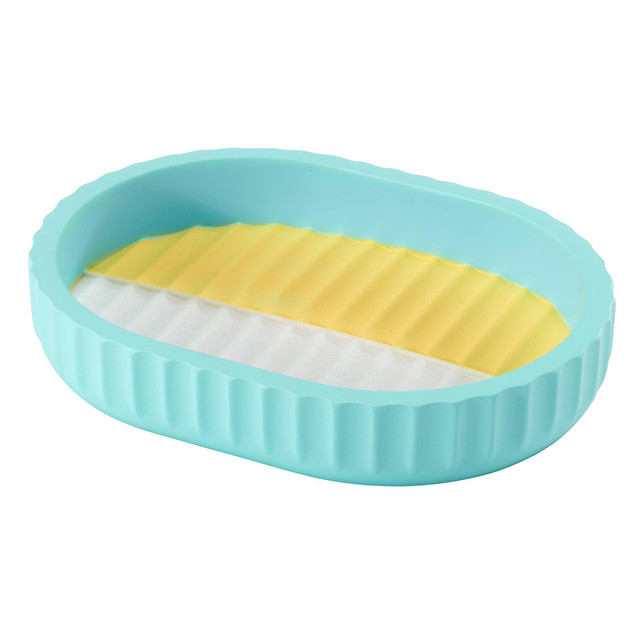 The Izod Clubhouse Aqua Stripe Soap Dish features a round, fluted design with 3 equal horizontal stripes of white, yellow and aqua. A great addition to any bathroom, bedroom or home office. Made of durable, hand-painted resin for easy-care and long-life. Hand painted. Measures 5.31 in. x 3.94 in. x 0.98 in.