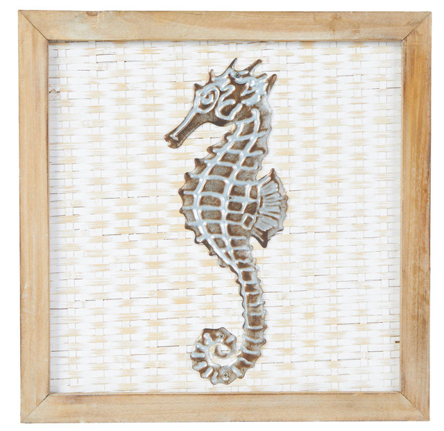 Introducing our 14-inch Metal Seahorse Woven Plaque, a unique and charming addition to your home decor. This plaque features a detailed seahorse design woven into a sturdy metal frame, perfect for adding a coastal touch to any space. Its durable construction ensures long-lasting beauty, making it ideal for both indoor and outdoor use.