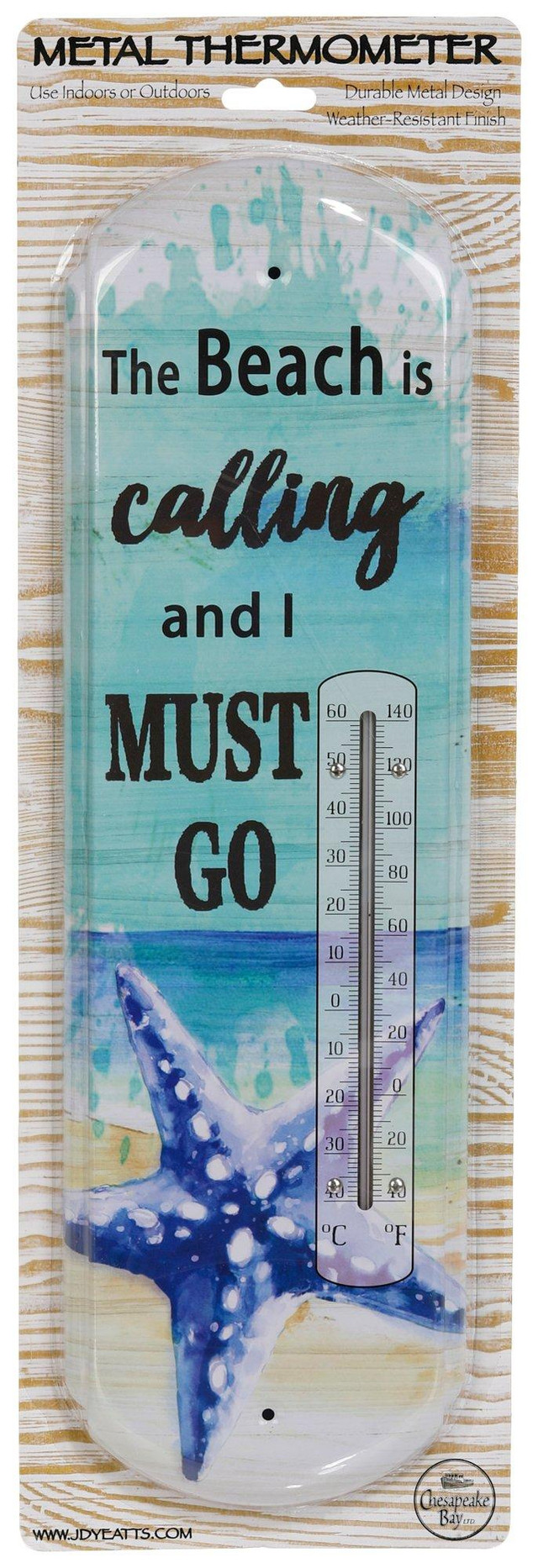 Introducing the Outdoor Beach Calling Thermometer, featuring a durable metal design and weather-resistant finish. Perfect for adding a touch of coastal charm to your outdoor space while reliably measuring the temperature. Ideal for beach lovers and garden enthusiasts! Measures 17.5 in x 5.25 in