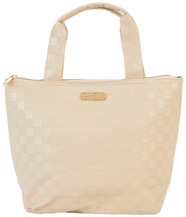 Carry your meals in style with this insulated lunch tote featuring a beige checker design. Measuring approximately 9.5 in x 4 in x 10 in, it offers plenty of space for snacks, drinks, and containers. The insulated interior helps keep food fresh throughout the day. A practical and fashionable choice for work, school, or travel.