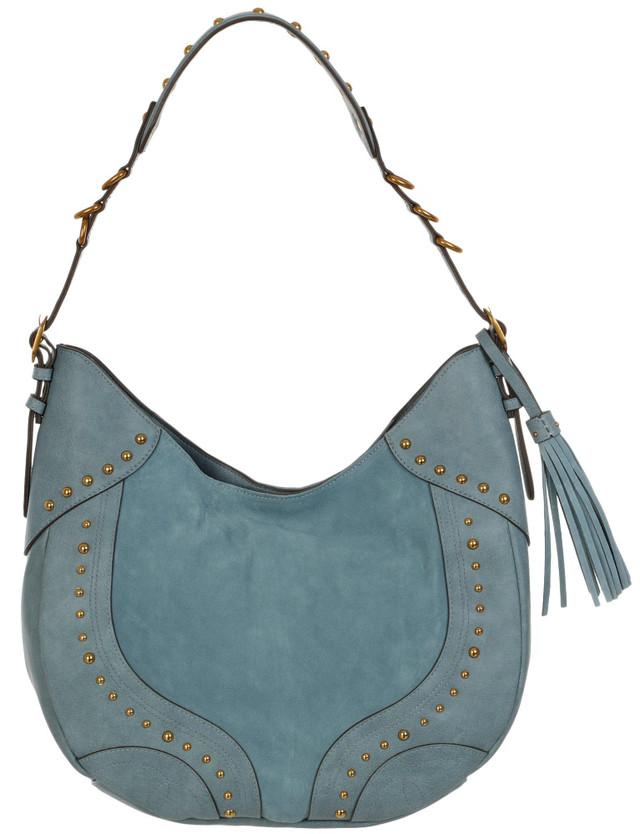 Enjoy an effortlessly cool style with the Raven hobo bag! This oversized purse features boho-inspired details including a cool crescent-shaped silhouette you can easily throw over your shoulder. Embellished with goldtone studs and a fringe accent. Measures 14 in x 4.5 in x 10.5 in.