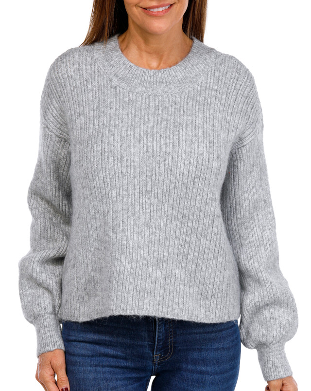 The women's Portia sweater offers timeless style with a cozy feel. Featuring a solid color, cropped fit, crew neckline, and textured design, it is perfect for layering or wearing solo. Its clean silhouette makes it a versatile choice for work or casual days. Fabrication 72% polyester, 19% acrylic, 9% nylon.