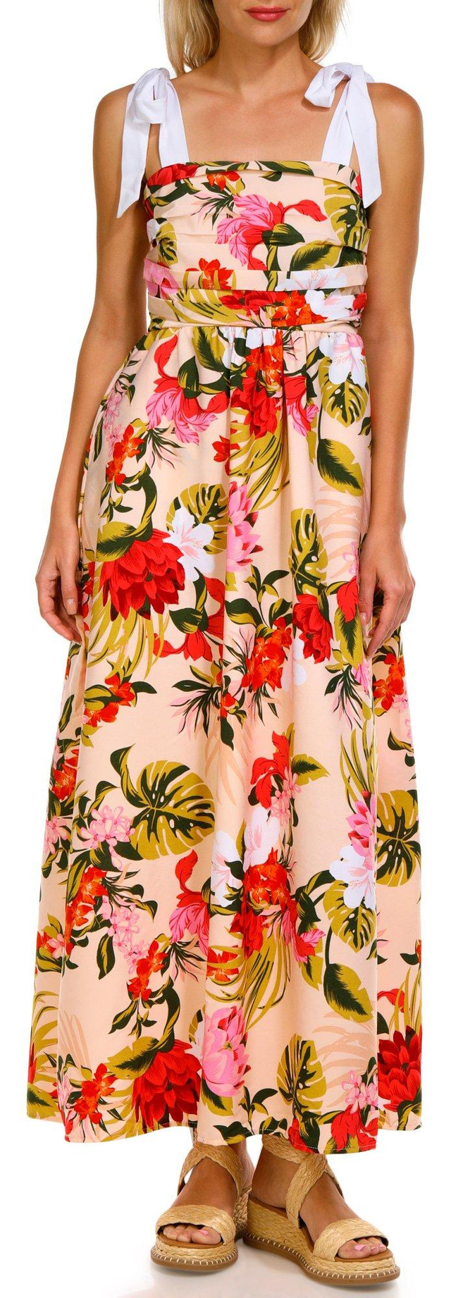 Introducing the Juniors Floral Maxi Dress, made from 100% polyester for a comfortable and stylish fit. This elegant dress features a vibrant floral print, tie straps, and convenient side seam pockets. The square neckline adds a touch of sophistication, while the 48-inch length makes it perfect for any occasion. Ideal for warm weather outings or casual gatherings, this maxi dress combines functionality with a chic design, making it a versatile addition to your wardrobe.