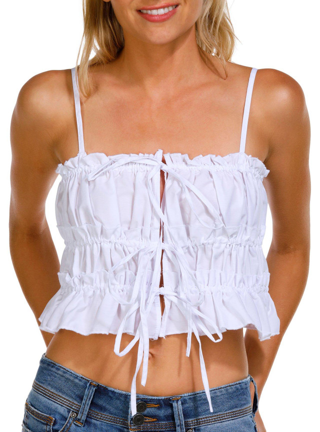 Introducing the Juniors Triple Tie Ruch Tank Top, a stylish blend of cotton and polyester for a comfortable and trendy fit. This top features a solid color and a chic tie front, complemented by a ruched design that adds texture and flair. The adjustable spaghetti straps ensure a perfect fit, while the 10-inch length offers a modern, cropped look. Perfect for casual outings or layering, this versatile tank top is a must-have addition to your wardrobe.