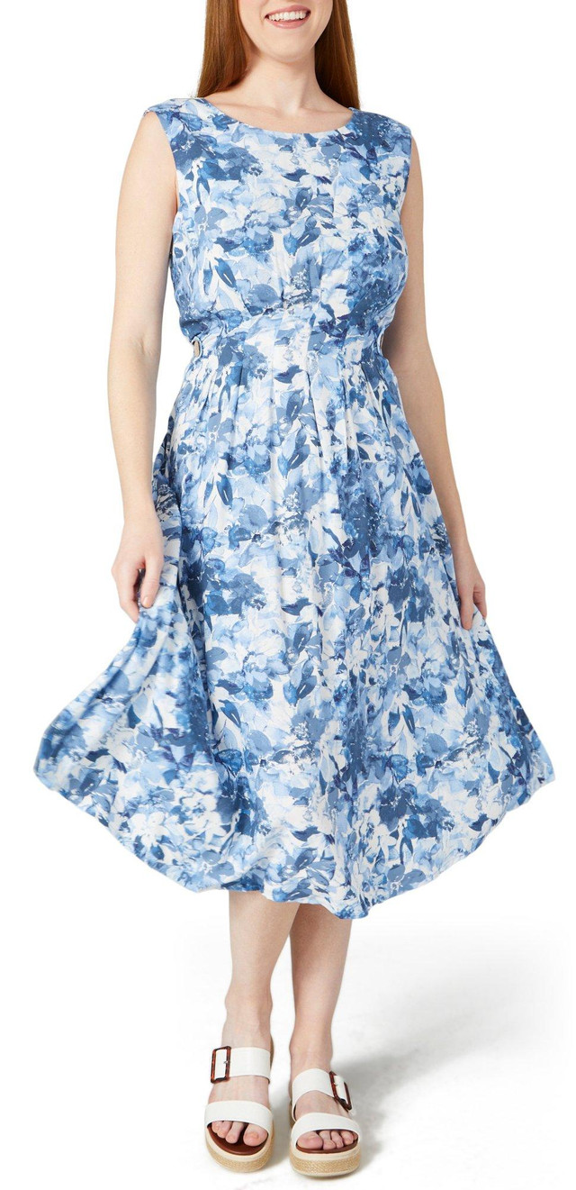 Step into sophistication with the Georgia Midi Dress. Featuring a captivating print pattern, this dress is designed to make a statement. The side tabs add a unique touch, while the pleated details enhance its elegant silhouette. Perfect for any occasion, this dress combines style and comfort effortlessly, making it a versatile addition to your wardrobe.