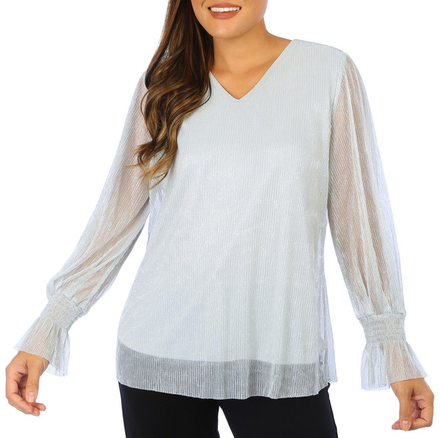Elevate your style with our Womens Metallic V-Neck Blouse! This chic blouse features long sleeves and a v-neckline, offering a classic yet elegant look. Made from 100% polyester, it provides a sleek and shimmering finish. Perfect for both casual and dressy occasions, this blouse is a versatile addition to your wardrobe that will make you shine!