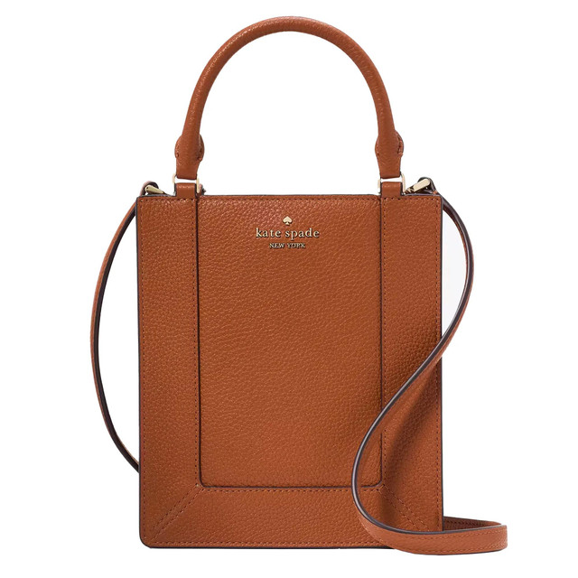 This structured leather bag exudes modern elegance with its boxy silhouette and pebbled texture. Dual top handles and clean lines create a polished look thats perfect for everyday sophistication. Measures approximately 7.5 in x 6.5 in x 2 in.