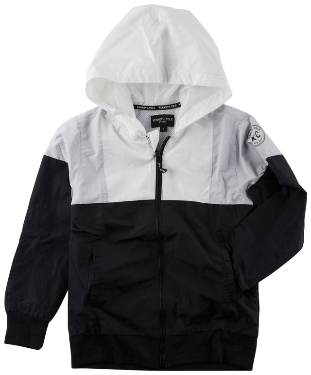 Stay ready for changing weather with the Big Boys Hooded Windbreaker Zipper Jacket featuring a bold colorblock design, mesh lining, zippered front, and functional front pockets. Great for school or outdoor activities. Fabrication is 100% polyester.