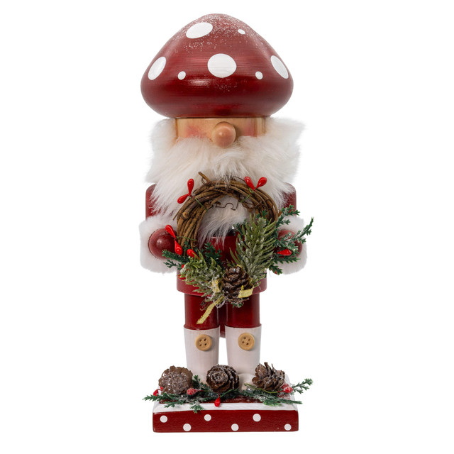 Kurt Adler's 9 Wooden Mushroom Santa Nutcracker is a whimsical and enchanting addition to your holiday decor that combines the classic charm of nutcrackers with a touch of woodland magic. This nutcracker features a unique design, showcasing Santa Claus atop a mushroom, adding a sense of holiday wonder and imagination to your Christmas decorations. Measures 3.75 in. x 3 in. x 9 in.