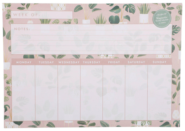 Introducing the Magnetic Calendar Notepad, measuring 12 inches by 8.5 inches and featuring 52 sheets. Perfect for keeping track of your schedule, this notepad combines practicality with convenience, easily attaching to any magnetic surface. Ideal for home, office, or school use!