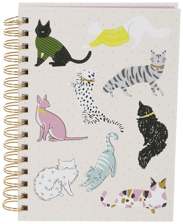 Introducing the Spiral Cat Notebook, featuring 250 lined pages. Measuring 6.5 inches by 9 inches, this notebook is perfect for jotting down notes, ideas, and doodles. Ideal for cat lovers and stationery enthusiasts!