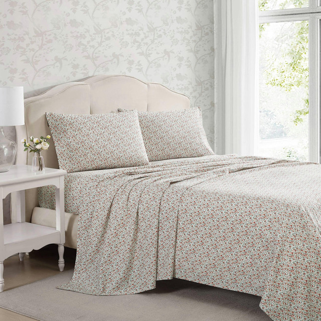 Add a charming romantic touch to your bedroom with this timeless floral Laura Ashley Sheet Set. These 200-thread count sheets are cool to the touch, breathable and lightweight. Perfect for long-lasting comfort, they become softer with each wash. The fully elasticized fitted sheet prevents slipping from the mattress and ensures the perfect fit. Fits queen and king mattresses up to 18 in. deep (16 in. deep for twin size, 17 in. for full size). Machine washable for easy care.