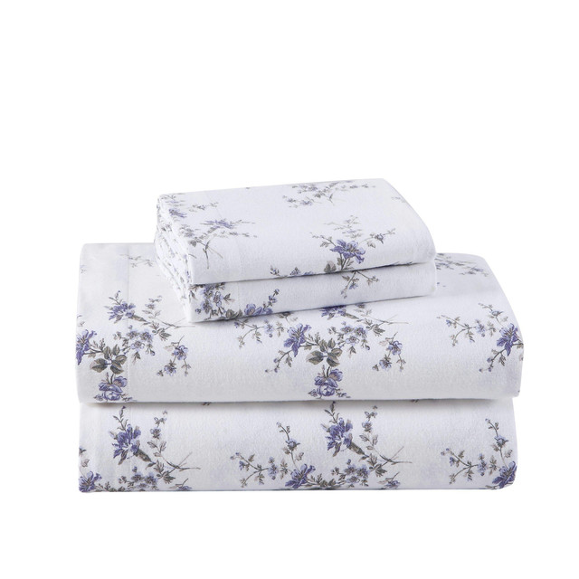 Bring a beautiful new look to your bed with this Laura Ashley Jessika floral flannel cotton sheet set. The fully elasticized fitted sheet features premium elastic encased around all 4 sides to keep the fitted sheet in place. The fitted sheet set fits mattresses up to 15 deep (12 for twin size). Sheet set includes one flat sheet, one fitted sheet, and two pillowcases (twin one pillowcase). Machine washable for easy care. Machine washable for easy care.