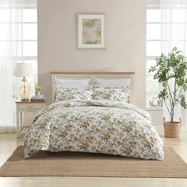 The Laura Ashley Roses Duvet Set in gold and green is a beautifully designed and timeless bedding ensemble that exudes elegance and comfort. This soft, lightweight set has a slightly textured feel, perfect for adding a touch of classic charm to your bedroom year-round. Easy care, machine washable.