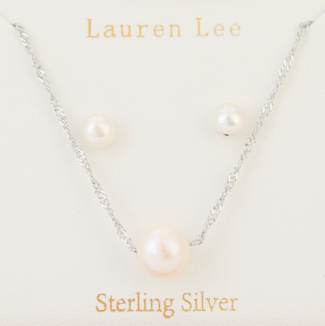 Lauren Lee Sterling Pearl Boxed Earring and Necklace Set