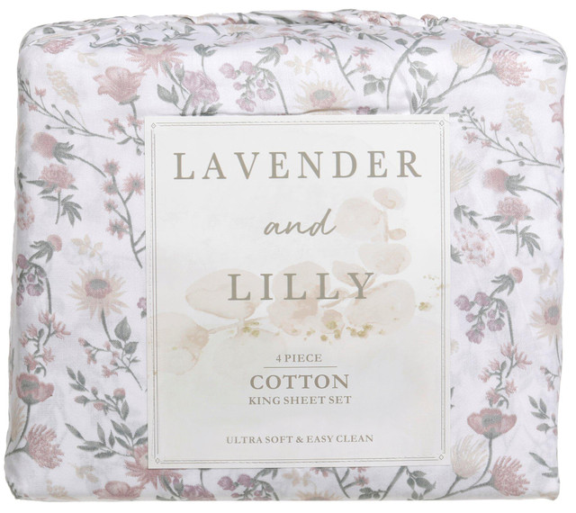 Lavender & Lilly Floral Print Sheet Set is made from soft, comfortable 100% coton for a restful night slumber. These sheets Fits Mattress up to 17'' and machine washable, making them simple to care for. Featuring micro floral pattern.
